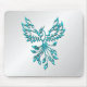 Teal Blue Phoenix Rises on Silver Mouse Pad