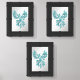 Teal Blue Phoenix Rises on Silver Wall Art Sets