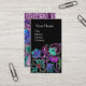 TEAL BLUE PURPLE LACE FLOWERS GEMSTONES Black Business Card