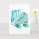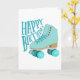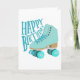 Teal Blue Retro Quad Roller Skate Happy Birthday Card