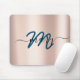 Teal. Blue Rose Minimal Name Monogram. Lux Mouse Pad