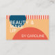 Beautiful artistic makeup artist business card. With contemporary teal blue, rust, orange and ivory off-white colored round circles and stripes pattern on a blush pink background combined with a modern minimalist font. Click on 'Personalize' to find the template ready to be customized with your unique business name, profession and contact information, and text of your choice. This particular pretty and unique design was made for those who like bright colorful pastels and sophisticated classic geometric abstract designs.