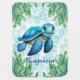 Teal Blue Sea Turtle Seaweed Baby Boy Gift Blanket