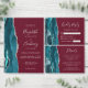 Teal Blue Silver Agate Burgundy Save the Date Card