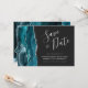 Teal Blue Silver Agate Dark Save the Date Card