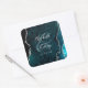 Teal Blue Silver Agate Script Wedding Square Sticker
