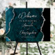 Teal Blue Silver Agate Script Wedding Welcome Foam Board