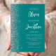 Teal Blue Silver Glitter Calligraphy Wedding Invitation