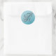 Teal Blue Silver Glitter Script Text Monogram R Classic Round Sticker
