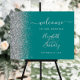 Teal Blue Silver Glitter Wedding Welcome Sign