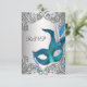 Teal Blue Silver Mask Masquerade Party RSVP Card