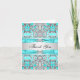 Teal blue thank you card with teal blue and diamond bows on a beautiful teal blue and silver lace background This is a printed graphic design with no actual jewels, bows, raised, embossed, or added parts or pieces.