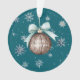 Teal Blue Snowflakes Christmas Coconut Bow Ornament