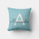 Teal Blue Sparkle Glitter Monogram Name & Initial Throw Pillow