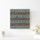Teal Blue Squares Art Pattern On Dark Coffee Brown Square Wall Clock