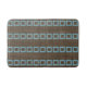 Teal Blue Squares Pattern On Dark Coffee Brown Bathroom Mat