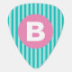 Teal Blue Vertical Striped Pink Circle Monogram Guitar Pick