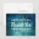 Teal and blue watercolor grunge Thank You postcard with white text.