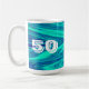Teal Blue Waves Abstract 50 Birthday Custom Gift Coffee Mug