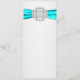 Beautiful teal blue wedding program, menu and reception card with elegant silver lace background a teal blue ribbon with diamond center. You can easily customize this teal blue wedding card for your event by adding your details in the font style, color wording and layout of your choice. This is a printed design with no real diamonds, ribbons, lace, etc.