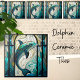 Teal Blue White Dolphin Faux Mosaic Stained Glass Ceramic Tile