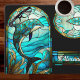 Teal Blue White Dolphin Stain Glass look Desk Mat