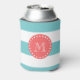 Teal Blue White Stripes Pattern, Coral Monogram Can Cooler