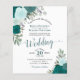 These affordable, budget friendly wedding invitations are the perfect choice for class, style, and beauty on a budget. The elegant design features hand painted watercolor roses in shades of teal, turquoise, aqua, and cyan, with a bevy of eucalyptus leaves and greenery. The typography features fancy script calligraphy, and the back is a deep marbled teal color. Wonderful way to invite your friends and family to share in your joy on your special day without breaking the bank.