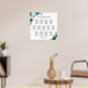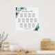 Looking for a stunning seating chart for your wedding reception? Look no further than this gorgeous design, featuring hand-painted watercolor roses in shades of teal, turquoise, aqua, and cyan, surrounded by lush eucalyptus leaves and garden greenery. With space for 130 names across 13 tables of 10 seats each, this seating chart is perfect for a range of wedding sizes. The elegant script calligraphy adds a touch of sophistication, and there's room for the names of the couple and the wedding date at the bottom. Whether your wedding is formal or casual, this beautiful boho chic seating chart strikes the perfect balance between rustic and classy, making it a great fit for any celebration.