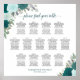 Teal Boho Roses 13 Table Wedding Seating Chart
