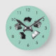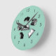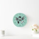 Teal Bookish Bibliophile Librarian Book Pattern Round Clock