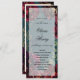 A teal blue and burgundy jewel tone wedding program to match the wedding invitation of the same name. This program features the invitation's border, a symphony of deep bordeaux raspberry red peonies embellished with gold spray and shimmering gold outlines on a deep teal blue watercolor-wash background, with opaque insert on the front and a solid white insert on the back for the writing.