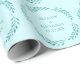 Beautiful teal leaf vines wrap around the wedding couple's names on this simple yet lovely seaside wedding wrapping paper. A classy look for a beach wedding near the ocean, combining a lovely pale blue with elegant typography for a chic custom gift wrap.