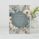 Delicate teal blossoms and muted floral accents create a dreamy, atmospheric backdrop. This design evokes a sophisticated yet lighthearted mood, perfect for a romantic union. The palette features soft blues, creams, and subtle earthy tones.