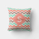 Teal,Brown,Coral Pink Zigzag Monogram Pattern Throw Pillow