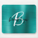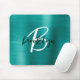 Teal Brushed Metal Black White Script Monogram Mouse Pad