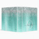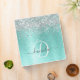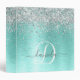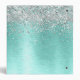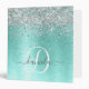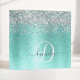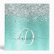Teal Brushed Metal Silver Glitter Monogram Name 3 Ring Binder