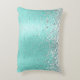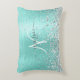 Teal Brushed Metal Silver Glitter Monogram Name Accent Pillow