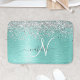 Teal Brushed Metal Silver Glitter Monogram Name Bath Mat