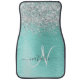 Easily personalize this trendy chic car floor mat design featuring pretty silver sparkling glitter on a teal brushed metallic background.