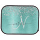Teal Brushed Metal Silver Glitter Monogram Name Car Floor Mat