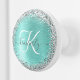 Teal Brushed Metal Silver Glitter Monogram Name Ceramic Knob