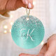 Teal Brushed Metal Silver Glitter Monogram Name Ceramic Ornament