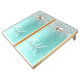 Teal Brushed Metal Silver Glitter Monogram Name Cornhole Set