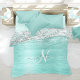 Teal Brushed Metal Silver Glitter Monogram Name Duvet Cover