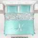 Teal Brushed Metal Silver Glitter Monogram Name Duvet Cover