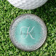 Teal Brushed Metal Silver Glitter Monogram Name Golf Ball Marker