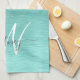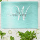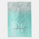 Teal Brushed Metal Silver Glitter Monogram Name Kitchen Towel