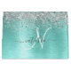 Teal Brushed Metal Silver Glitter Monogram Name Large Gift Bag