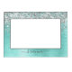 Teal Brushed Metal Silver Glitter Monogram Name Magnetic Frame